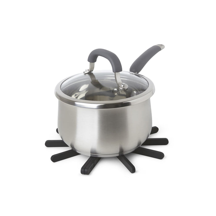 ​Add a touch of playful design and practical functionality to your kitchen with the Umbra Fanfare Trivet set. Crafted from heat-resistant silicone, these trivets fan out into a circular shape, secured by embedded magnets, providing a stable surface for hot dishes. Its heat-resistant silicone material doesn’t only protect your table or kitchen counter when serving hot dishes, it also prevents Fanfare from slipping or scratching table and countertop surfaces. Fanfare’s dynamic flower shape allows for overlapping multiples by attaching two trivets together, or using them side-by-side for large items like baking dishes, baking sheets and more