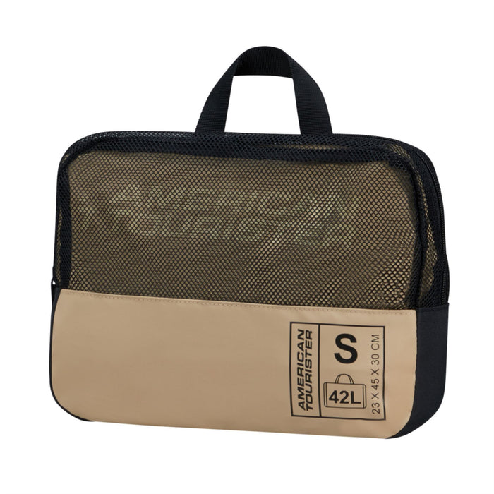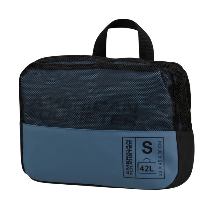 Discover the ultimate travel companion with the American Tourister TrailGo Duffle bag, a versatile piece of luggage that seamlessly transforms from a duffle to a backpack. Crafted with care for the environment, this bag is made from 100% Recyclex fabric technology. It has a spacious main compartment with elastic cross-ribbons and dual side shoe pockets, ensuring ample space and organisation for all your travel gear. Easily switch between using it as a duffle or a backpack, thanks to its ergonomic backpack straps. When not in use, this TrailGo Duffle bag collapses easily for compact storage, and comes with a dedicated storage bag to save space