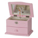 Top section – Lift the lid to be greeted by a graceful, twirling ballerina, dancing to the melody of the built-in music box. This main compartment has 1 open compartment & cushioned ring rolls